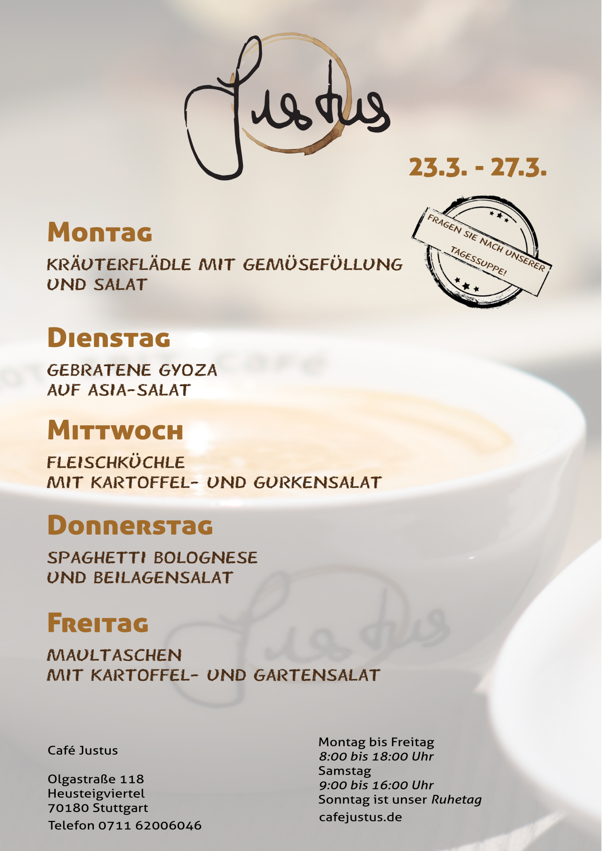 Gastfreundschaft, Humor, Lebensfreude, Aufmerksamkeit und Achtsamkeit werden bei uns tagtäglich gelebt und sind die Basis der herzlichen Atmosphäre, die jeden Gast im Café Justus empfängt. Man spürt schon beim Eintreten: Hier arbeiten alle Seite an Seite zum Wohl der Gäste.